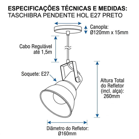 Luminaria Pendente Hol E27 Preto Taschibra