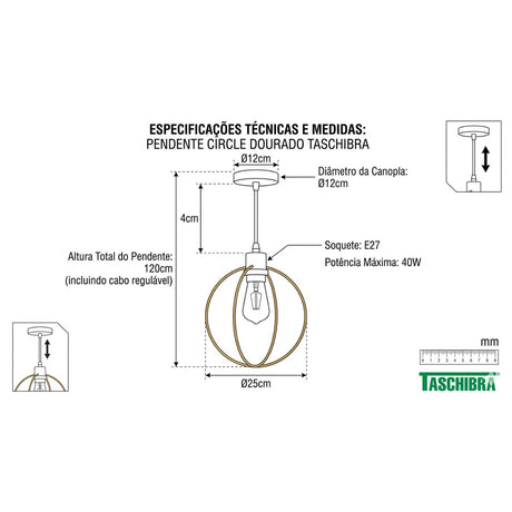 Pendente Circle 1xe27 Dourado Taschibra