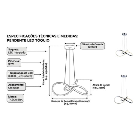 Pendente LED Toquio 3000K 30W Cromado Taschibra