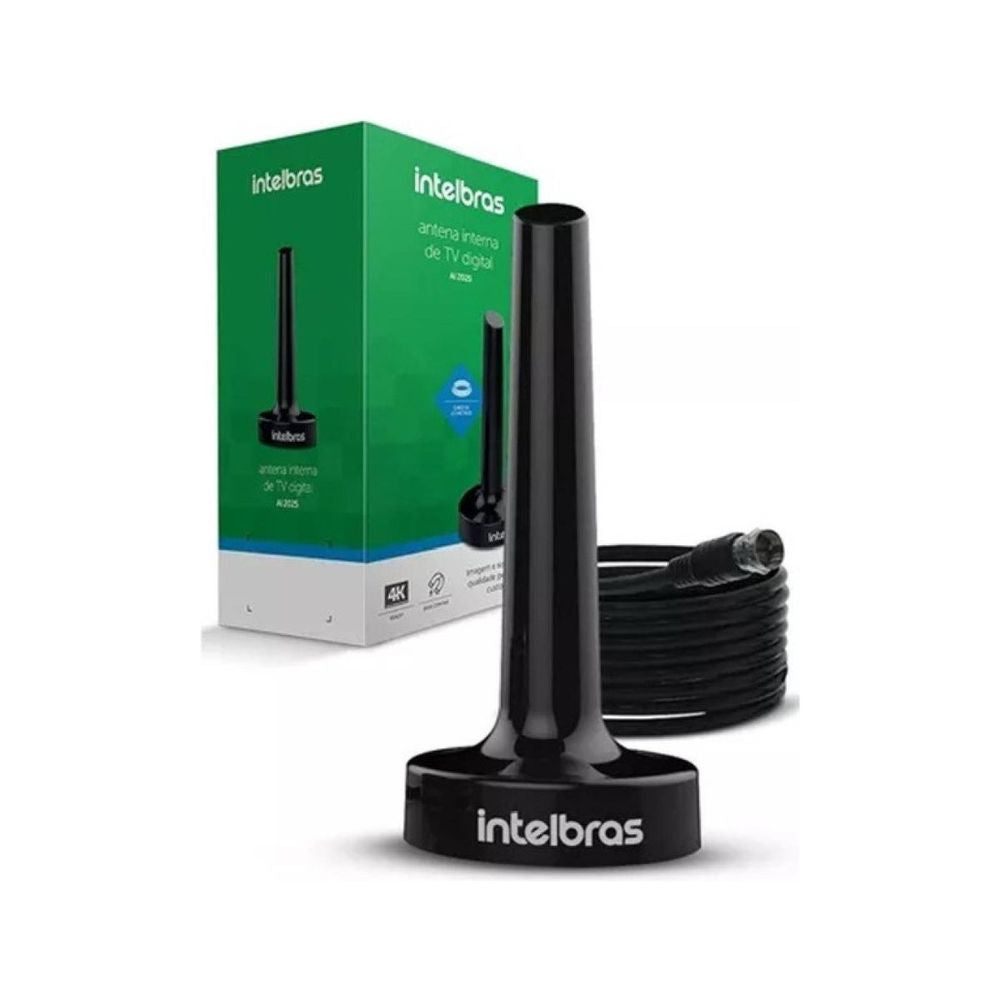 Antena de TV Interna UHF/HDTV AI 2020 2,5M Intelbras A Antena de TV Interna UHF/HDTV AI 2025 2,5M é uma antena compacta e eficiente, com cabo de 2,5 metros, permitindo maior flexibilidade na instalação e posicionamento. Com design discreto e de fácil instalação, é a solução perfeita para quem precisa de uma antena interna para captar sinais UHF e HDTV sem perder a qualidade da imagem. Ideal para quem mora em áreas urbanas ou em locais onde a recepção de sinais de TV possa ser mais difícil com antenas convencionais.Especificações Técnicas: Marca: Intelbras Modelo: AI 2025 Captação de sinais UHF e HDTV Compatível com qualquer modelo de televisor ou conversor digital Cabo de 2,5 m Base magnética para maior liberdade e praticidade de instalação Pronto para instalar Materiais de alta resistência e durabilidade Frequência de operação: 470 a 860 Mhz Banda de operação: UHF Conector "F" Macho Tamanho do cabo: 2,5 metros Impedância: 75 ohm Dimensões da antena(AxLxP): 67x150x67 mmAtenção, imagens meramente ilustrativas.