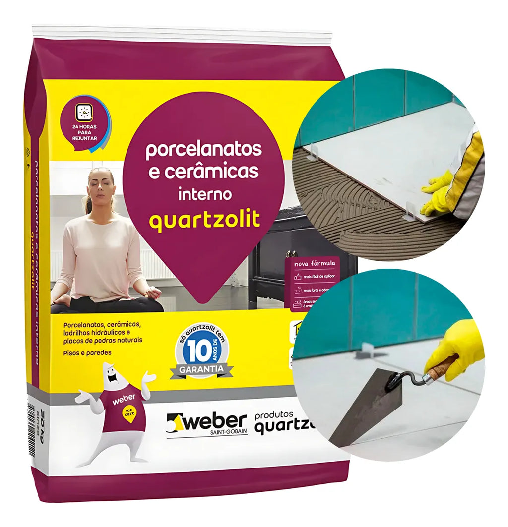 A Argamassa Porcelanato Interno Cinza 20kg Quartzolit é ideal para quem busca assentamento preciso e durável de porcelanatos e revestimentos cerâmicos em ambientes internos. Sua fórmula garante adesão eficiente, fácil manuseio e acabamento uniforme, proporcionando resultados profissionais em pisos e paredes.