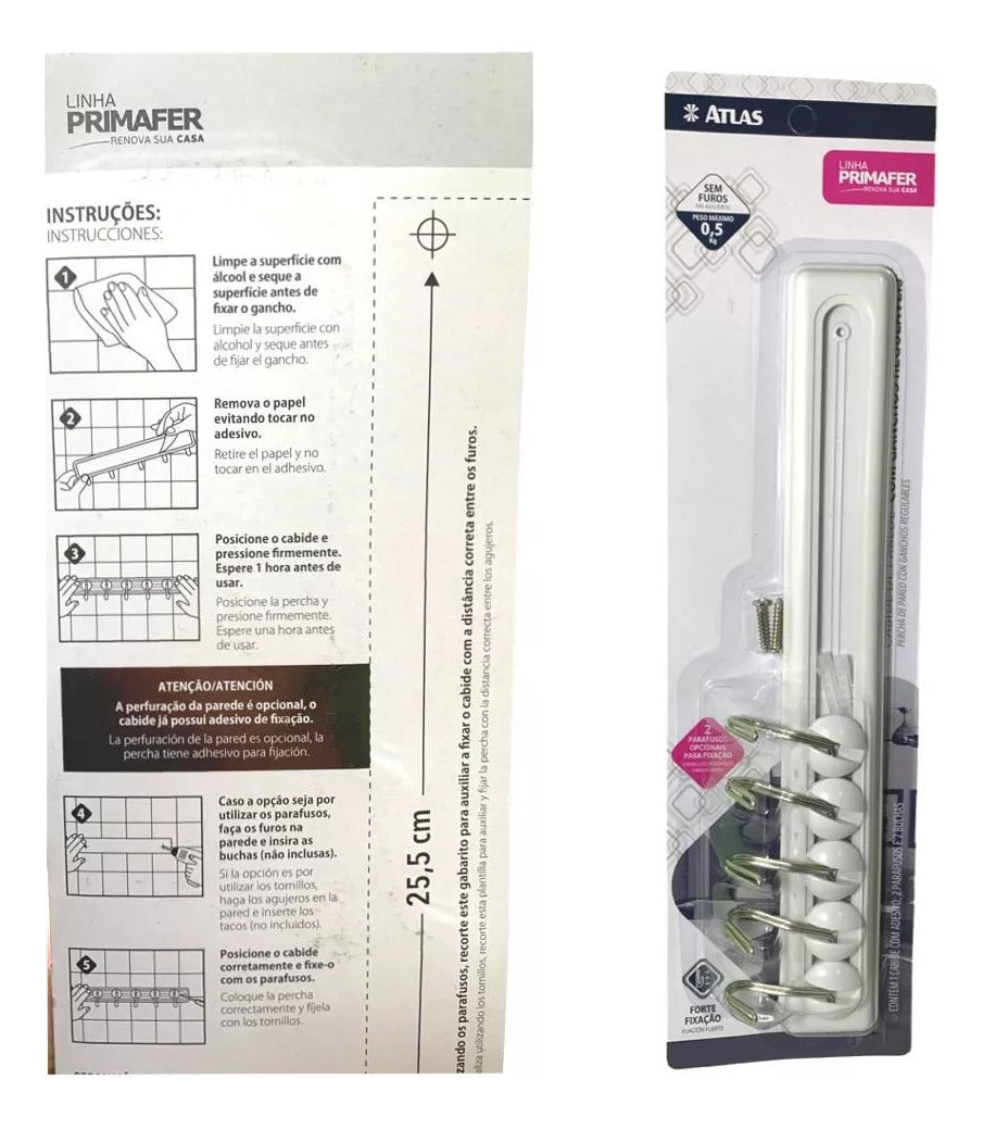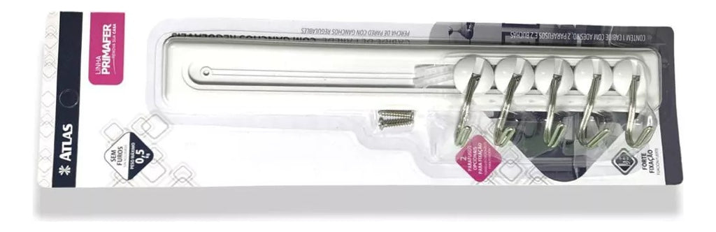 Cabideiro Adesivo Plástico Branco e Metal - Atlas