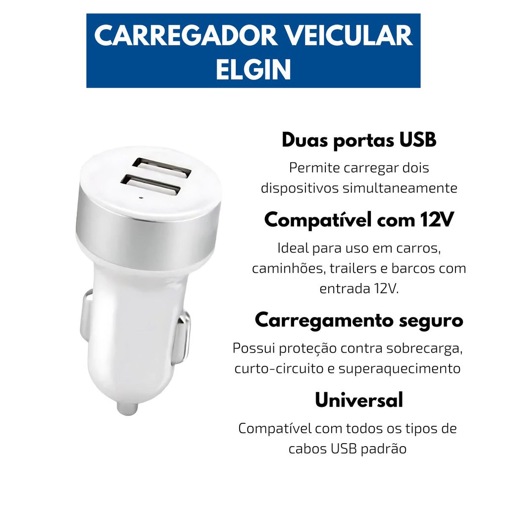 Carregador Veicular 12V com 2 Saídas USB – Elgin