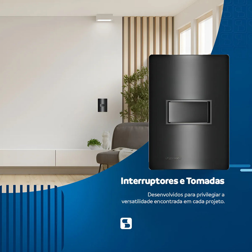 O Conjunto 1 Interruptor Simples 10A 4x2 Carbono Revita Soprano combina design moderno, qualidade e praticidade para instalações elétricas residenciais e comerciais. Com acabamento na cor carbono, ele oferece elegância e durabilidade, sendo ideal para ambientes que buscam sofisticação e funcionalidade.