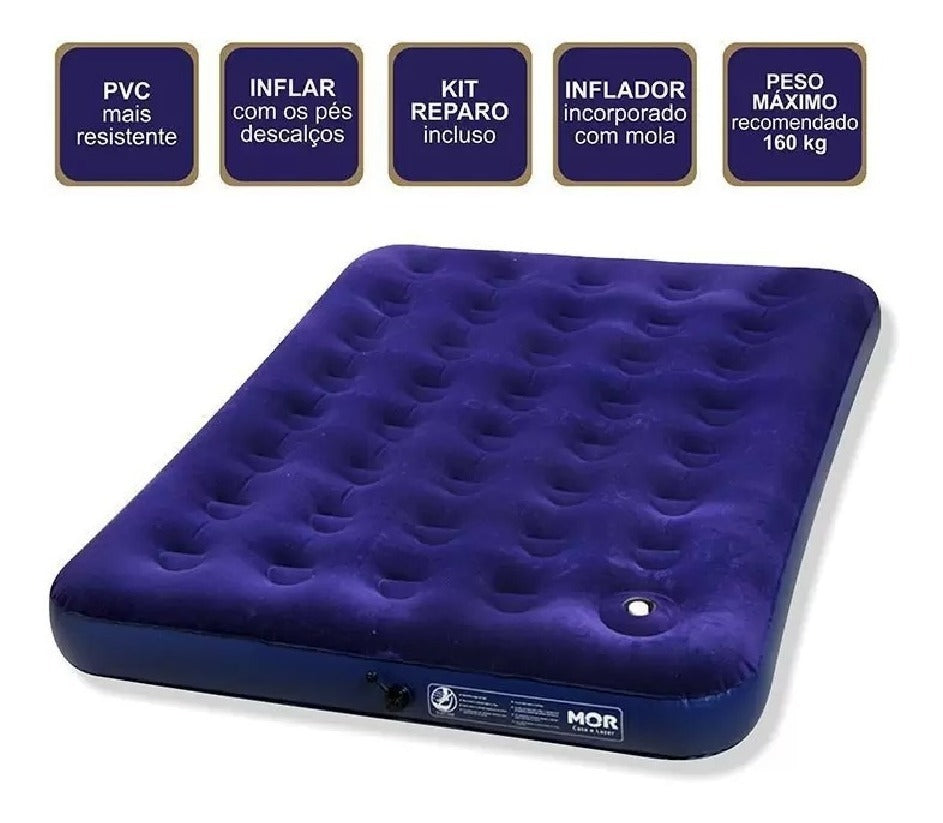 O Colchão Inflável Casal com Fole Mor é ideal para quem busca conforto e praticidade para descanso em casa ou em viagens. Perfeito para campings, visitas ou situações temporárias, proporciona suporte firme e confortável e inclui fole integrado para inflagem prática e rápida.