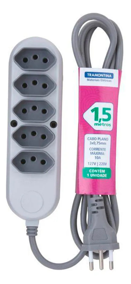 A Extensão Elétrica Tramontina com 5 Tomadas 2P+T 10A/250V e cabo de 1,5 metro oferece praticidade e segurança para conectar diversos aparelhos em um só lugar. Com design compacto e tomadas no padrão brasileiro (NBR 14136), é ideal para residências, escritórios e ambientes comerciais, permitindo o uso simultâneo de até 5 equipamentos com eficiência e confiabilidade.