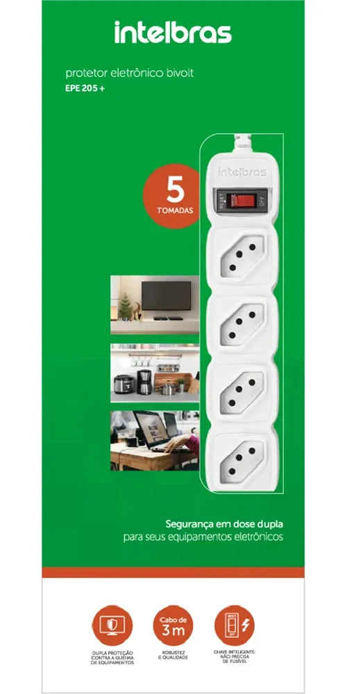 Filtro de Linha com 5 Tomadas EPE 205 Branco 3m – Intelbras