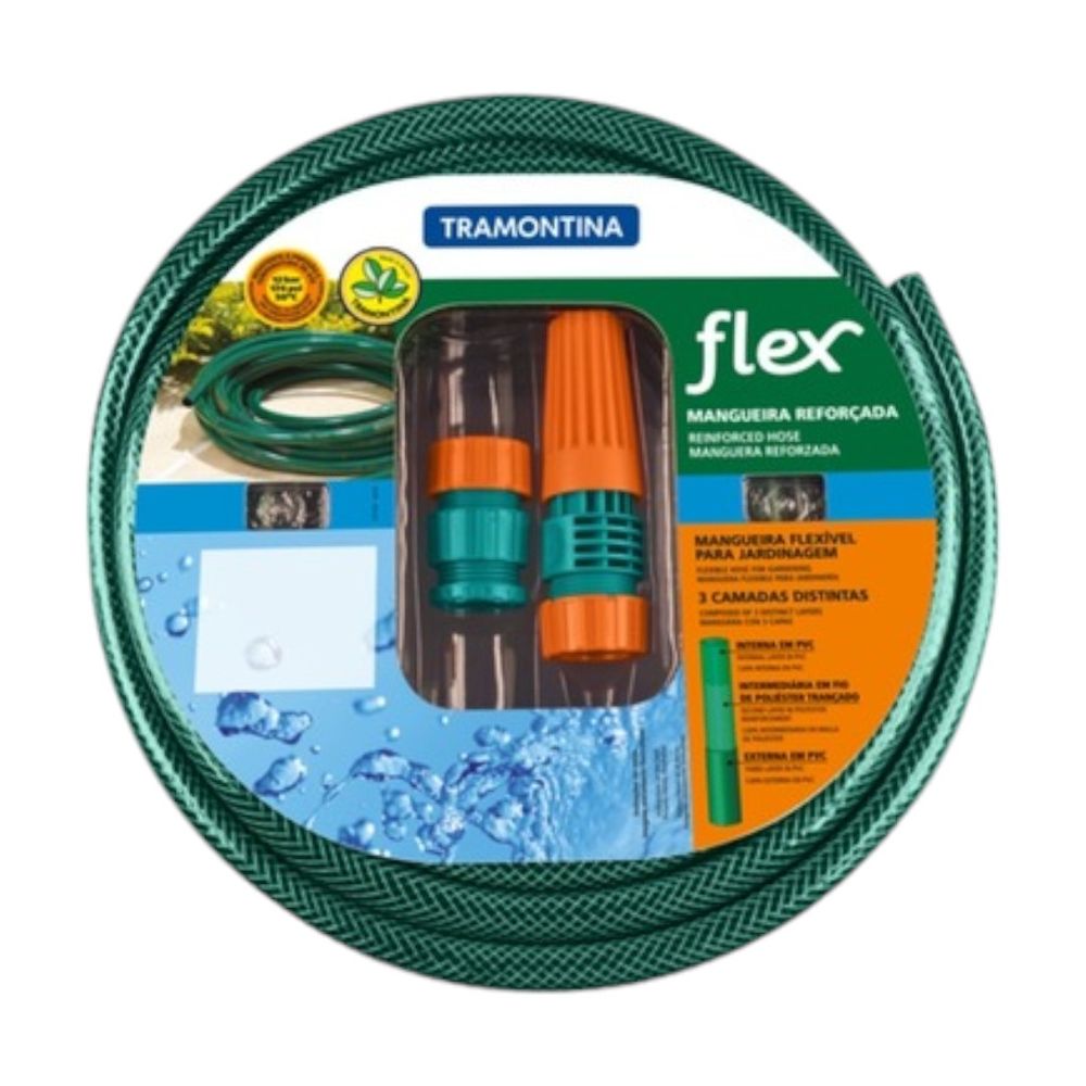 O Jogo Mangueira Flexível Tramontina 20m é a solução prática e eficiente para irrigar jardins, hortas e áreas externas com facilidade e conforto.