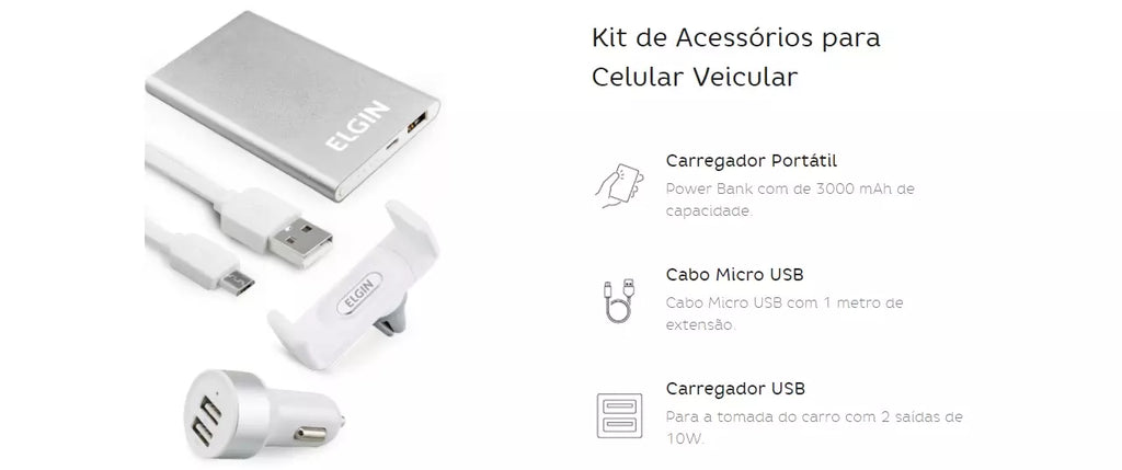 Kit Carregador Bateria Portátil 3000mAh – Elgin