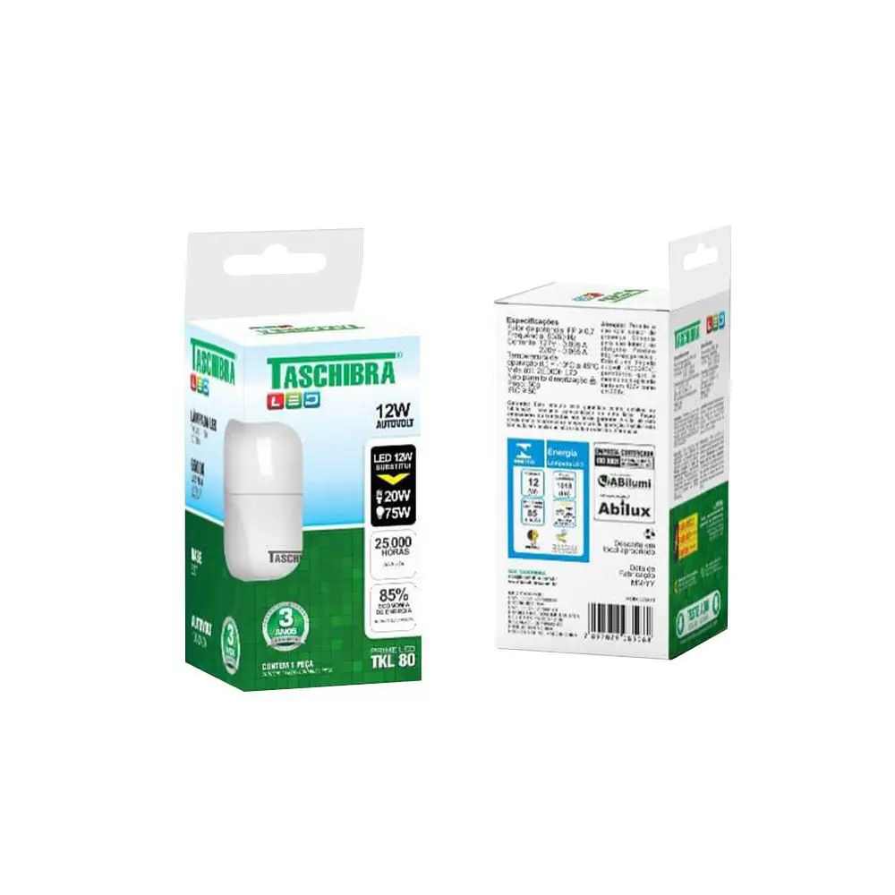 A Lâmpada LED Bulbo TKL 80 12W 6500K Taschibra é a escolha ideal para quem busca iluminação intensa, econômica e duradoura. Com luz branca fria (6500K), proporciona excelente claridade, sendo perfeita para cozinhas, escritórios, áreas de serviço e comércios. Substitui lâmpadas incandescentes e fluorescentes com baixo consumo de energia e longa vida útil, garantindo eficiência e conforto visual.