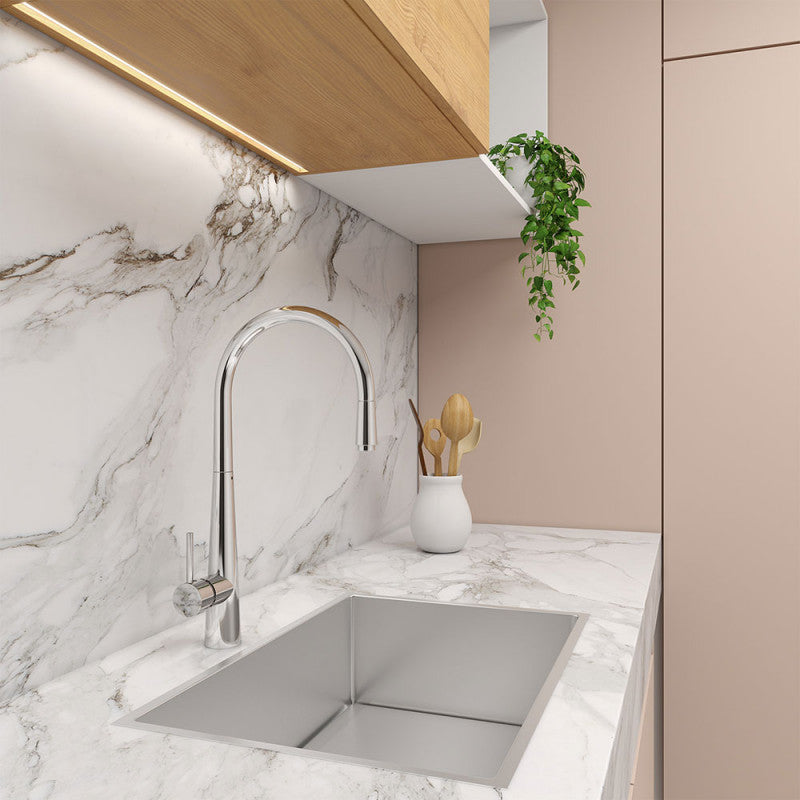 Funcionalidade e estilo para a sua cozinha. O Monocomando de Bancada Cozinha Flex Minimal 2885 C75 da Meber une praticidade, modernidade e resistência em um só produto. Com bica flexível em silicone, permite direcionar o jato de água conforme a necessidade, facilitando a limpeza de utensílios e da cuba. O acionamento monocomando garante ajuste rápido e preciso da temperatura e da vazão da água. Além disso, seu design minimalista e acabamento cromado oferecem sofisticação ao ambiente.