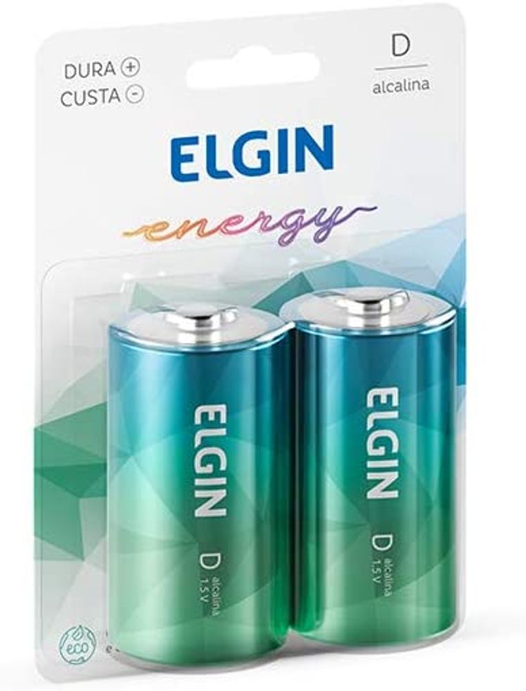 Pilha Alcalina Grande D Cartela com 2 Peças Elgin