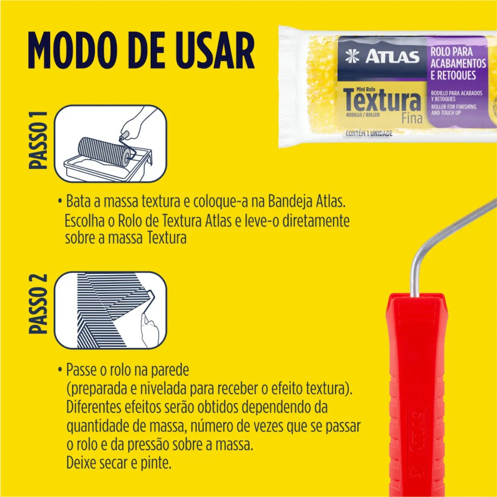 O Rolo Textura Espuma 9cm – Atlas é perfeito para quem busca praticidade na criação de efeitos decorativos em paredes e superfícies menores. Fabricado em espuma especial de alta qualidade, proporciona aplicação uniforme de textura, garantindo um acabamento diferenciado, ideal para trabalhos de detalhe, recortes ou áreas reduzidas.