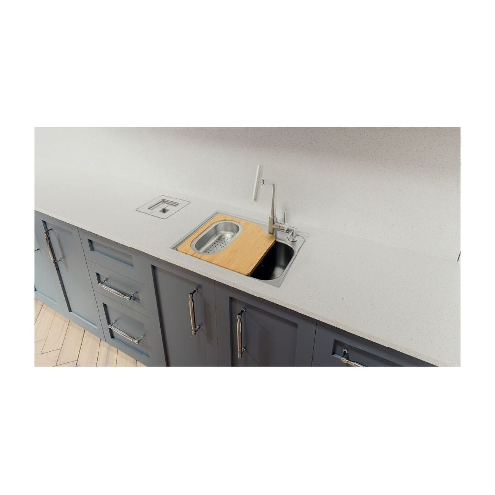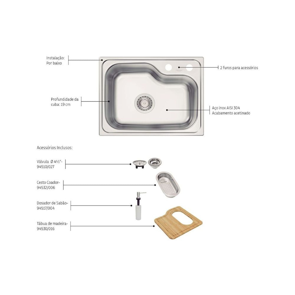Com a cuba Morgana Compact 48 FX Undermount em aço inox é possível aproveitar todo o espaço da bancada da sua cozinha. Acompanha válvula, tábua de madeira, cesto coador e dosador de sabão. É a opção ideal para cozinhas compactas, além de suprir muito bem as demandas diárias, em razão da profundidade de 19 cm e da praticidade dos acessórios. Fabricada inteiramente em aço inox, com espessura de 0,8 mm, garante alta durabilidade e resistência.